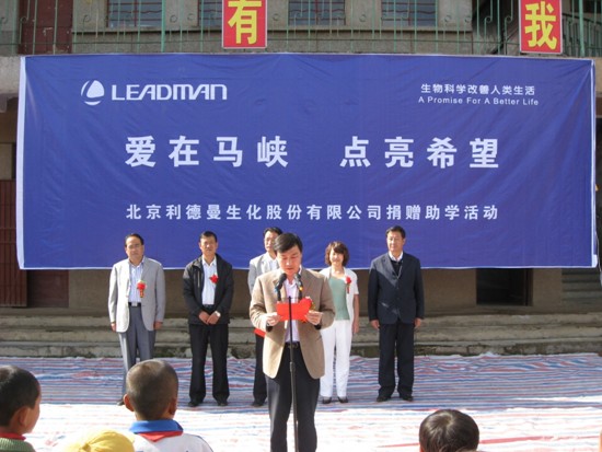 马峡,甘肃—— 2010年9月7日,乐竞平台_乐竞(中国)向甘肃省平凉市华亭县马峡中心小学无偿捐赠了价值十万元的钢木课桌椅。乐竞平台_乐竞(中国)副总经理张雅丽、华亭县县委常委、副县长徐德才、华亭县教育局局长陶玉宏等出席了捐赠仪式。马峡中心小学校长杜安平向乐竞平台_乐竞(中国)公司赠送了锦旗,表达感激之情。