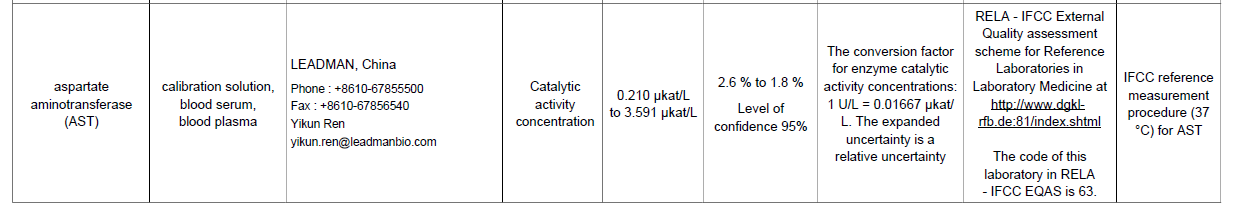 乐竞平台_乐竞(中国)医学参考实验室本次申报的肌酸激酶(CK)、丙氨酸氨基转移酶(ALT)、天冬氨酸氨基转移酶(AST)、乳酸脱氢酶(LDH)、γ-谷氨酰基转移酶(GGT)、α-淀粉酶(α-AMY)和碱性磷酸酶(ALP)7个酶学项目全部获得通过,涵盖了已建立参考方法且临床常用的所有酶学项目,表明乐竞平台_乐竞(中国)医学参考实验室对上述7个酶学项目的参考测量水平已达国际最高水平,有资格为全球体外诊断试剂制造商、医疗机构、第三方检测机构等提供国际认可的参考测量定值服务,也为检验结果的互认提供了技术支持。