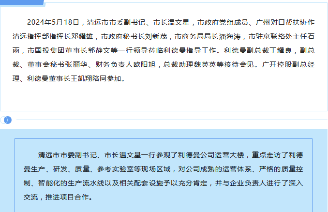 清远市市委副书记、市长温文星一行 莅临乐竞平台_乐竞(中国)指导工作