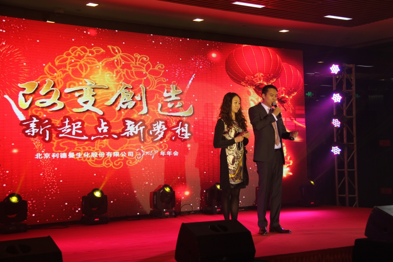 晚会正式开始前,舞台的大屏幕上播放着各中心的拜年视频集锦,有搞笑、有温情,诉不尽的是所有乐竞平台_乐竞(中国)人对新年的期望,对未来的憧憬。伴随着欢快的乐曲,开场主持人登场,对过去的感恩,对未来的期望,以及求创新改革的决心,是这场晚会的主题。在开场主持人对出席本次新春年会的嘉宾及各领导之后,由董事长兼总裁沈广仟先生对本次乐竞平台_乐竞(中国)“2014改变•创造 新起点•新梦想”新春年会致开幕词。沈先生在致辞中提到,“2014年是生物医疗行业投资并购的大年。在科技发展的现代,越来越多的企业投身于医疗器械行业研发相关技术,乐竞平台_乐竞(中国)要在变革中求发展”。沈先生的讲话与本次年会主题相契合,乐竞平台_乐竞(中国)人致以热烈掌声以回应沈先生的期望,是的,2014年,乐竞平台_乐竞(中国)人一定会果敢坚决的变革下去。