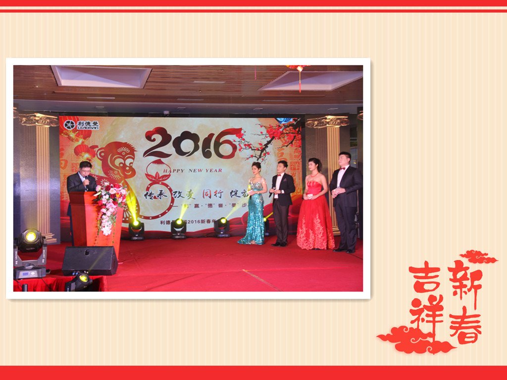 去旧图新、万象更新;高朋满座、金猴呈祥。乐竞平台_乐竞(中国)集团2016年新春年会“传承·改变·同行·绽放 '利'·赢 '德'誉·'曼'步2016”于2016年1月29日下午在乐竞平台_乐竞(中国)三期隆重举行。
